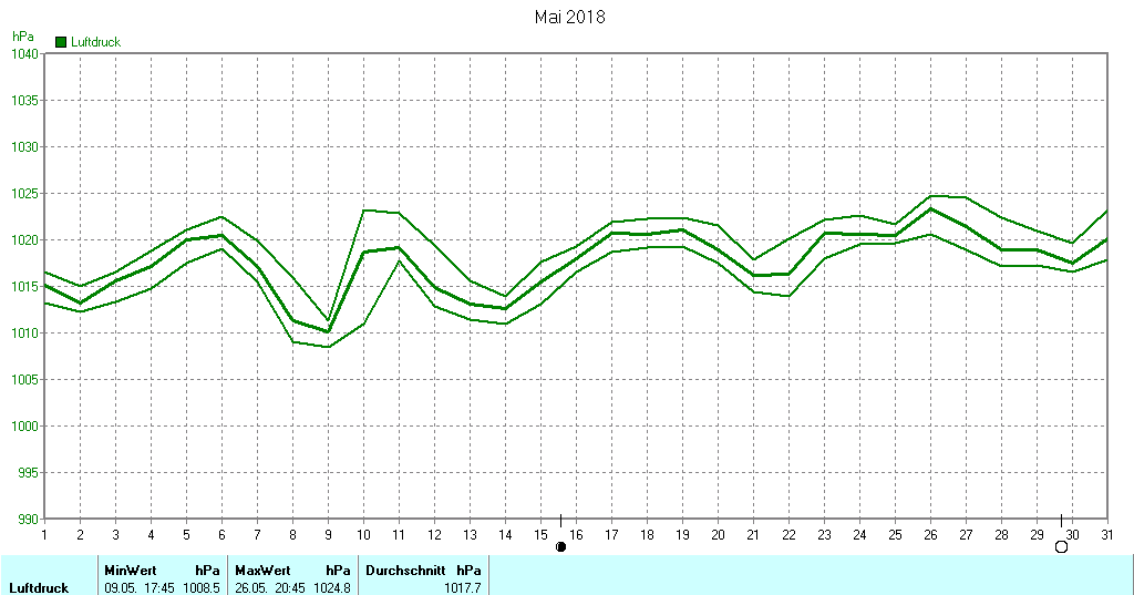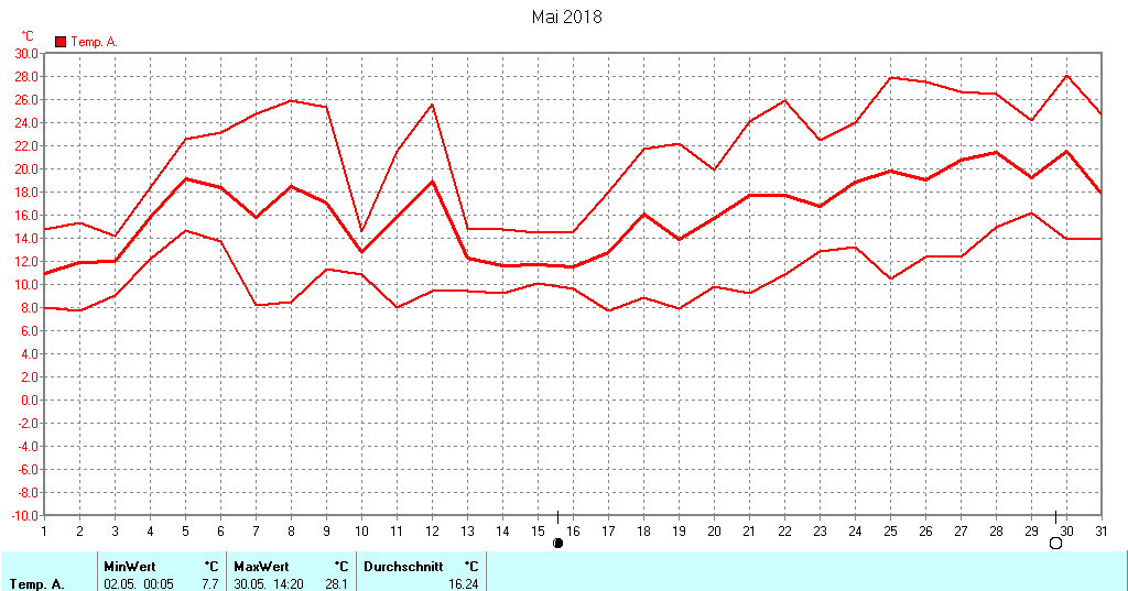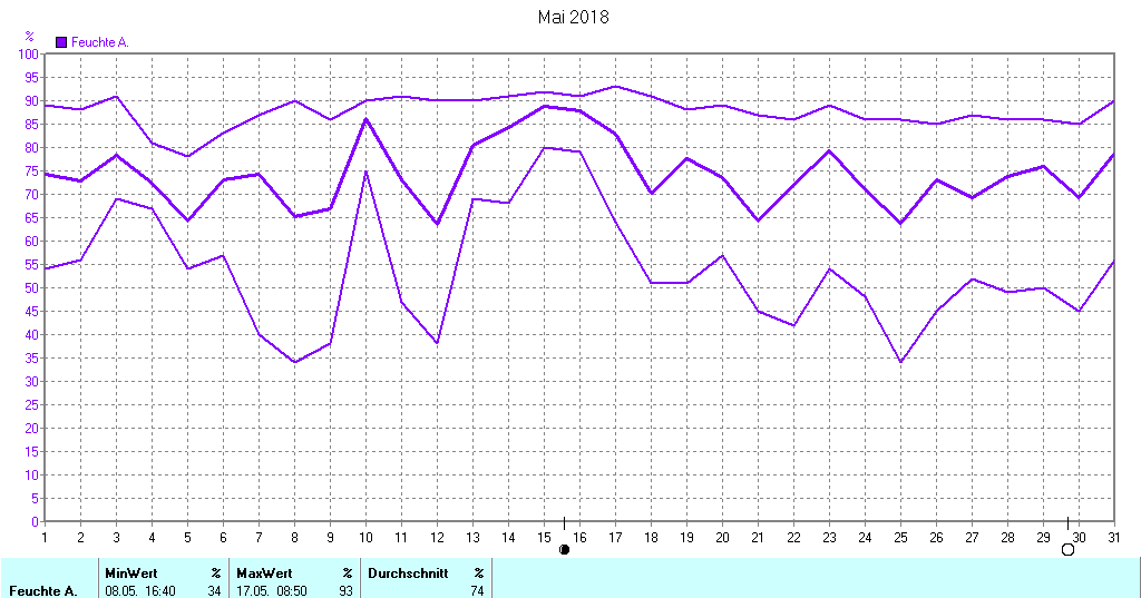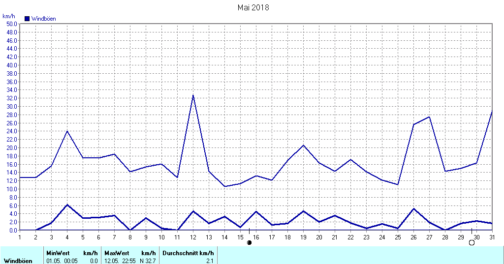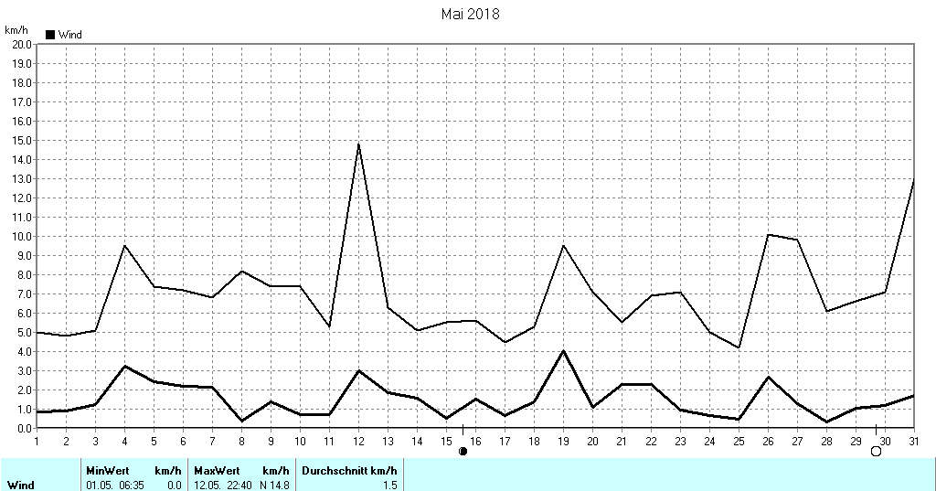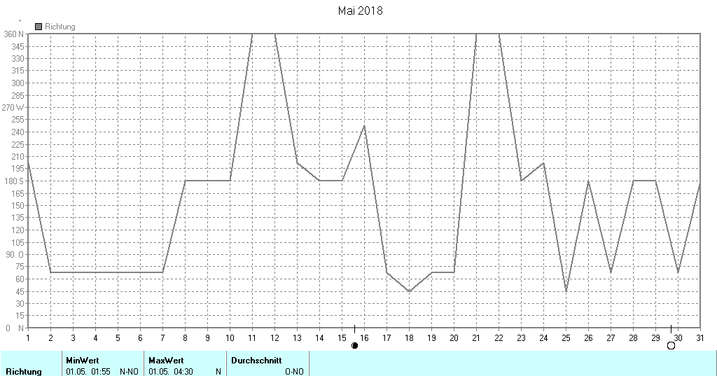 Einzelgrafiken zeigen Minimum, Mittelwert, Maximum (Regen und Windrichtung absolut)
