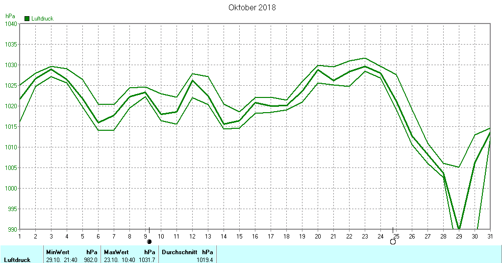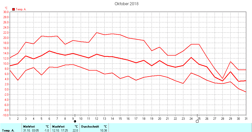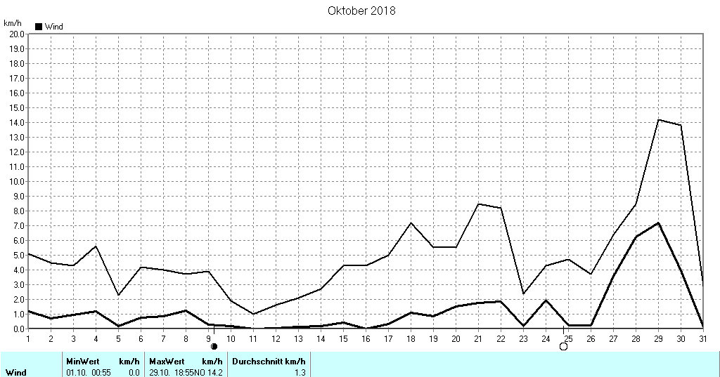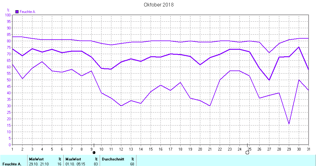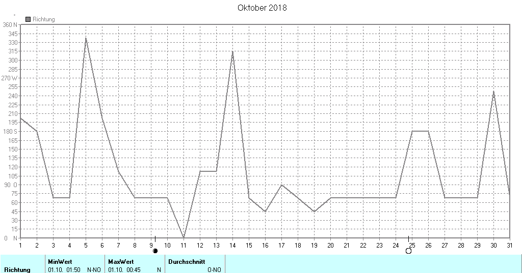Einzelgrafiken zeigen Minimum, Mittelwert, Maximum (Regen und Windrichtung absolut)