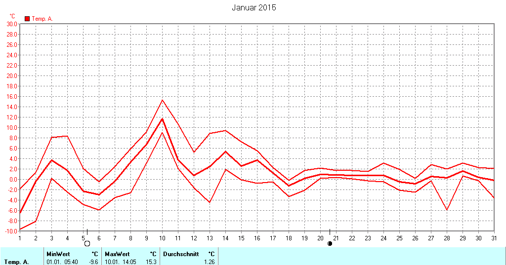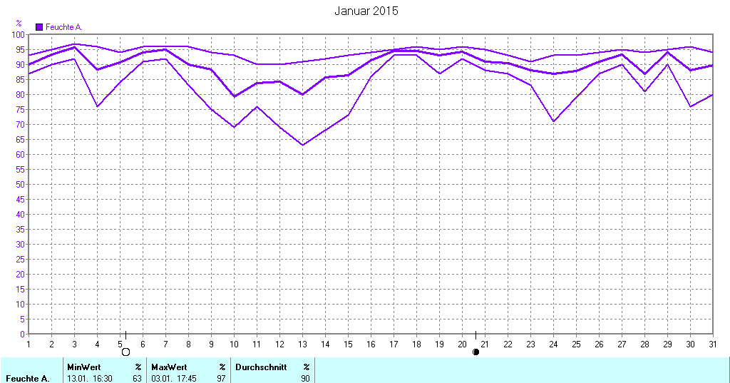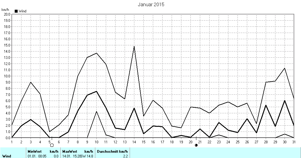 Einzelgrafiken zeigen Minimum, Mittelwert, Maximum (Regen und Windrichtung absolut)