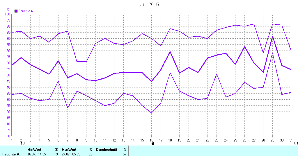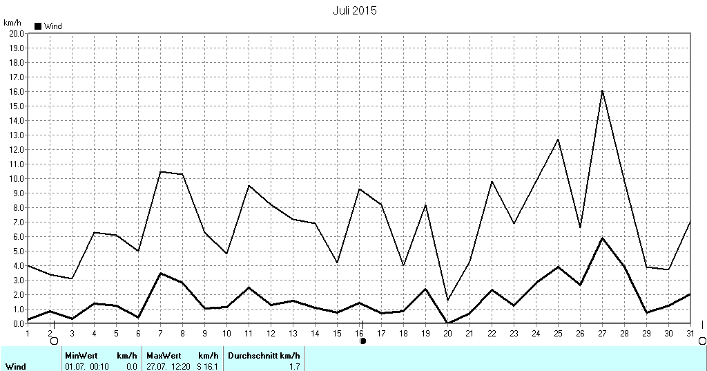 Einzelgrafiken zeigen Minimum, Mittelwert, Maximum (Regen und Windrichtung absolut)