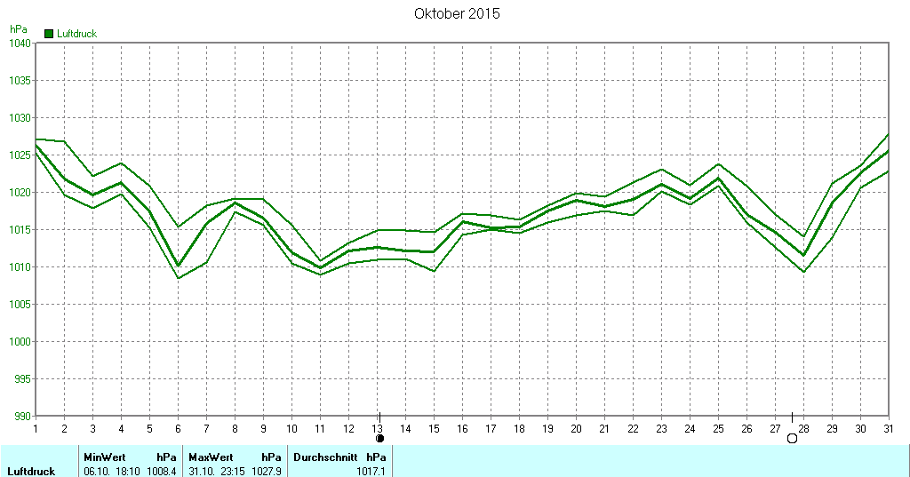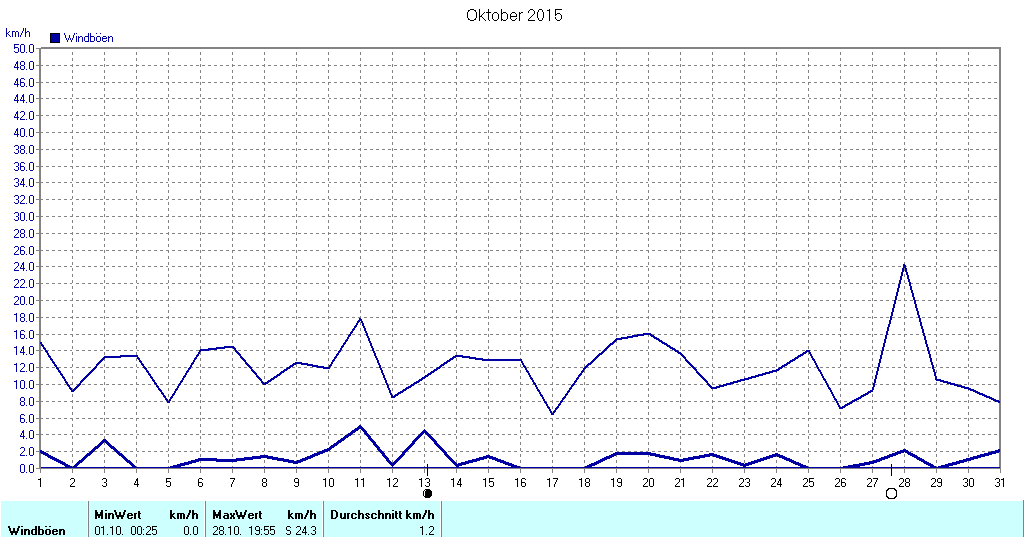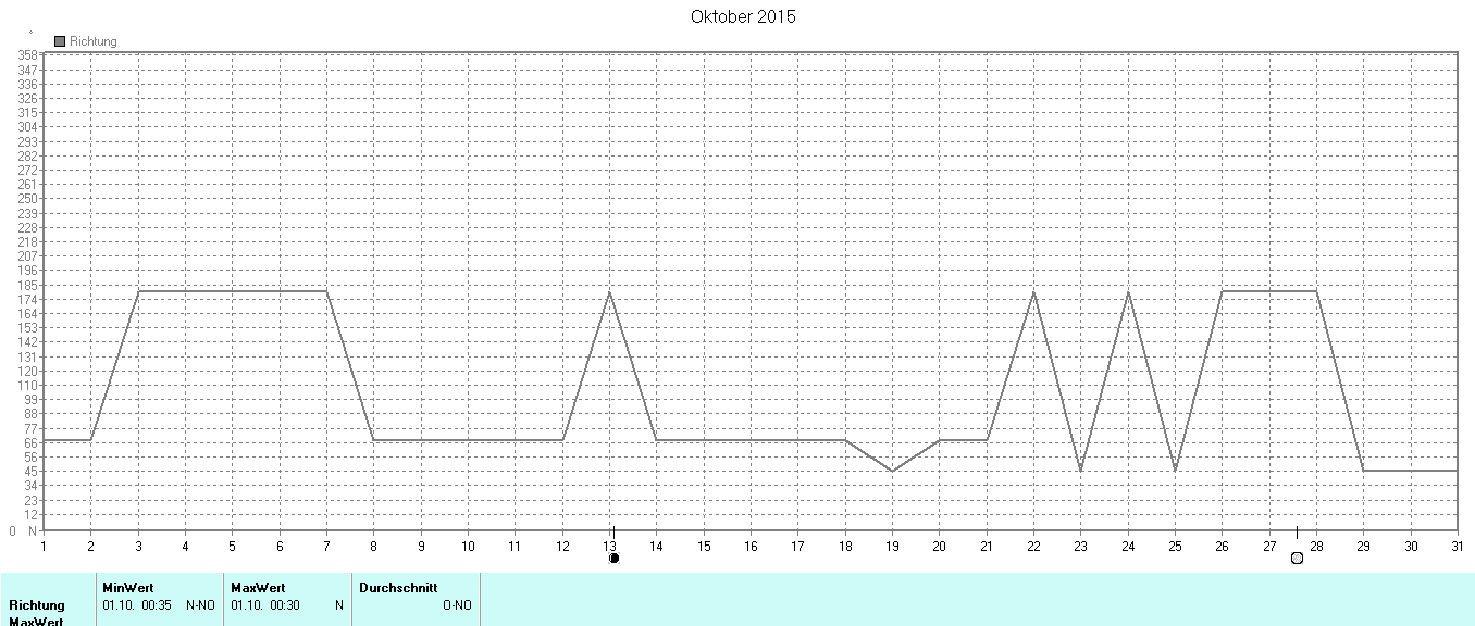 Einzelgrafiken zeigen Minimum, Mittelwert, Maximum (Regen und Windrichtung absolut)