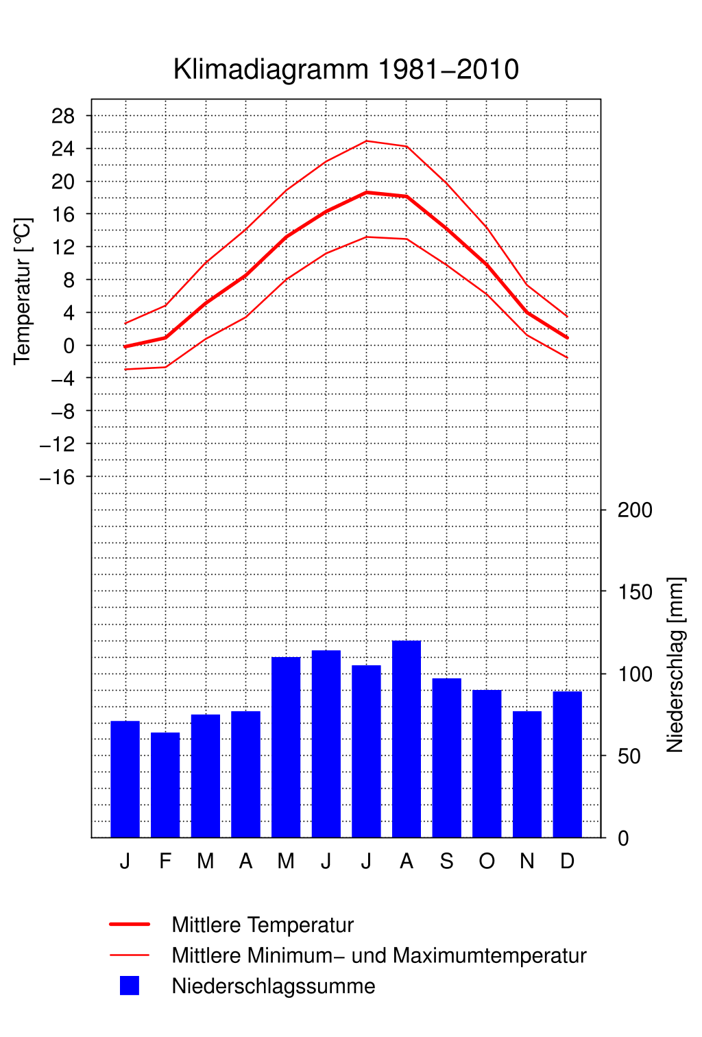 Temperaturmittelwerte und Niederschlagsmengen von 2018