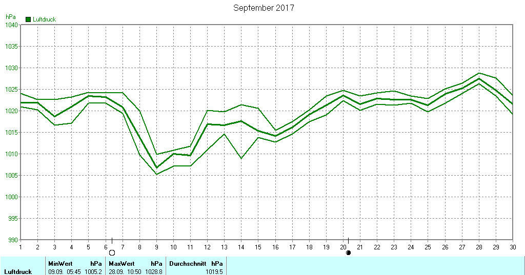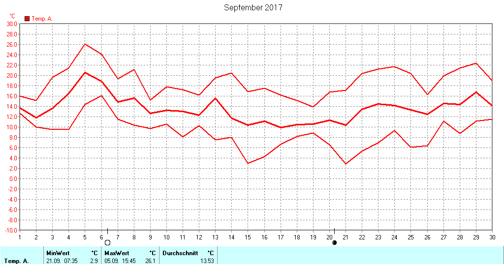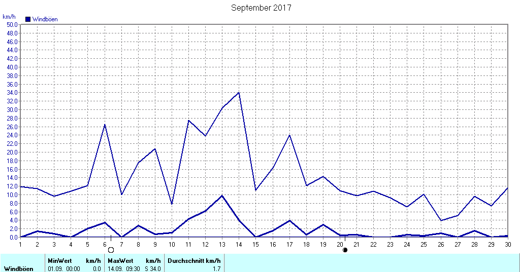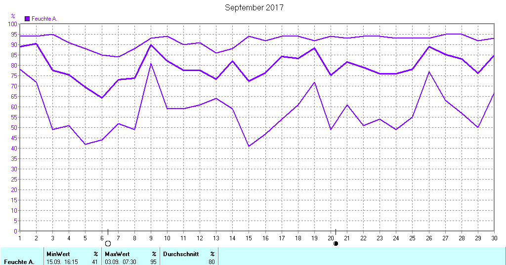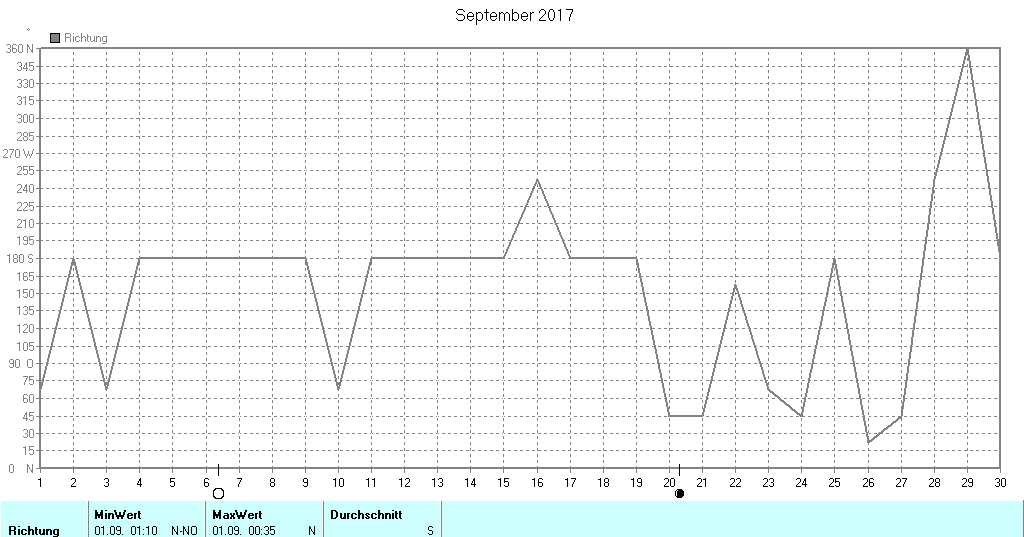 Einzelgrafiken zeigen Minimum, Mittelwert, Maximum (Regen und Windrichtung absolut)