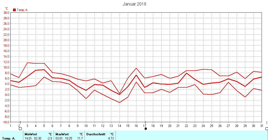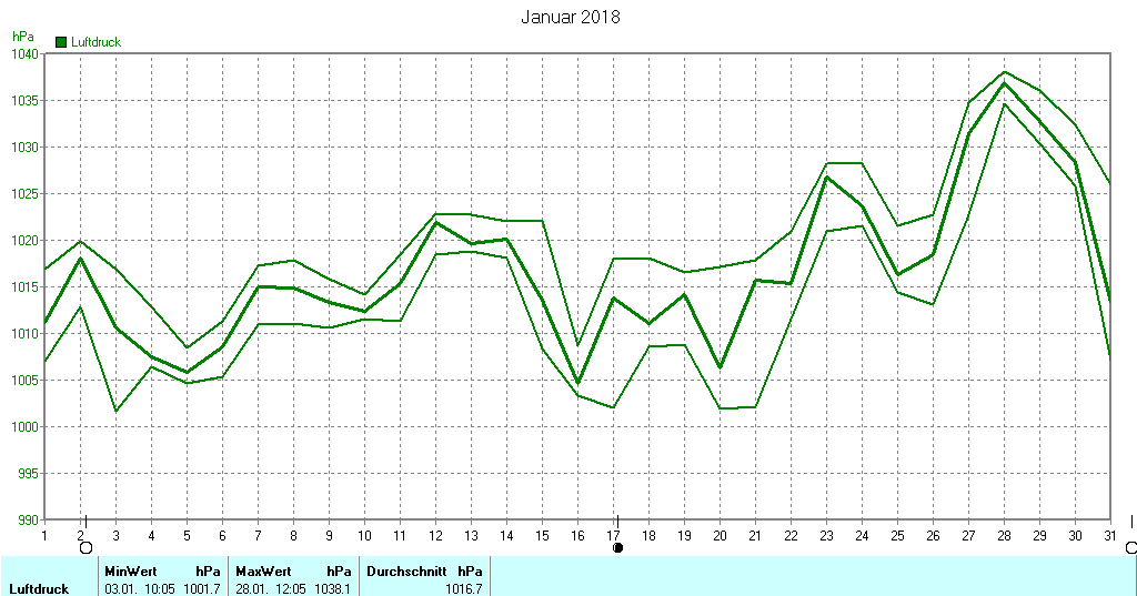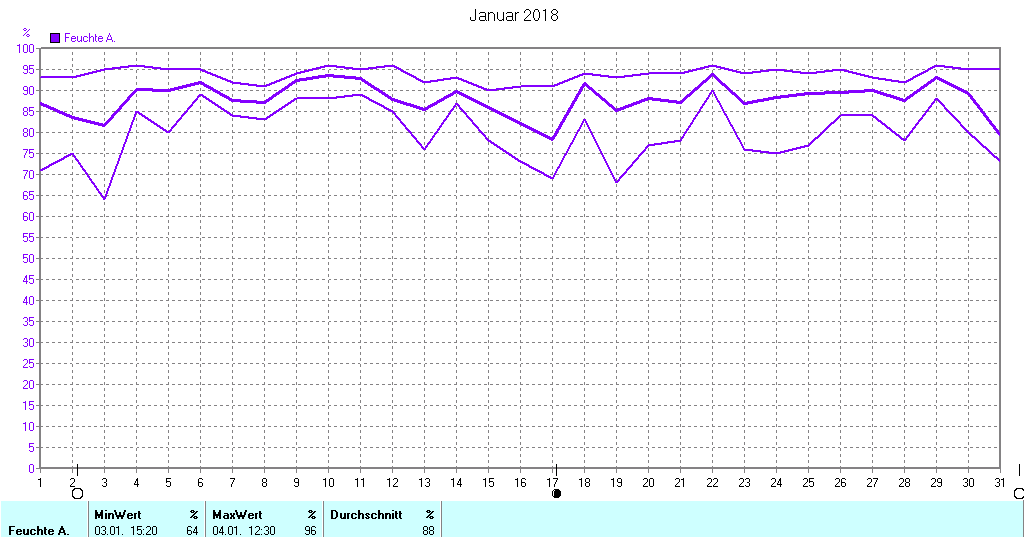 Einzelgrafiken zeigen Minimum, Mittelwert, Maximum (Regen und Windrichtung absolut)