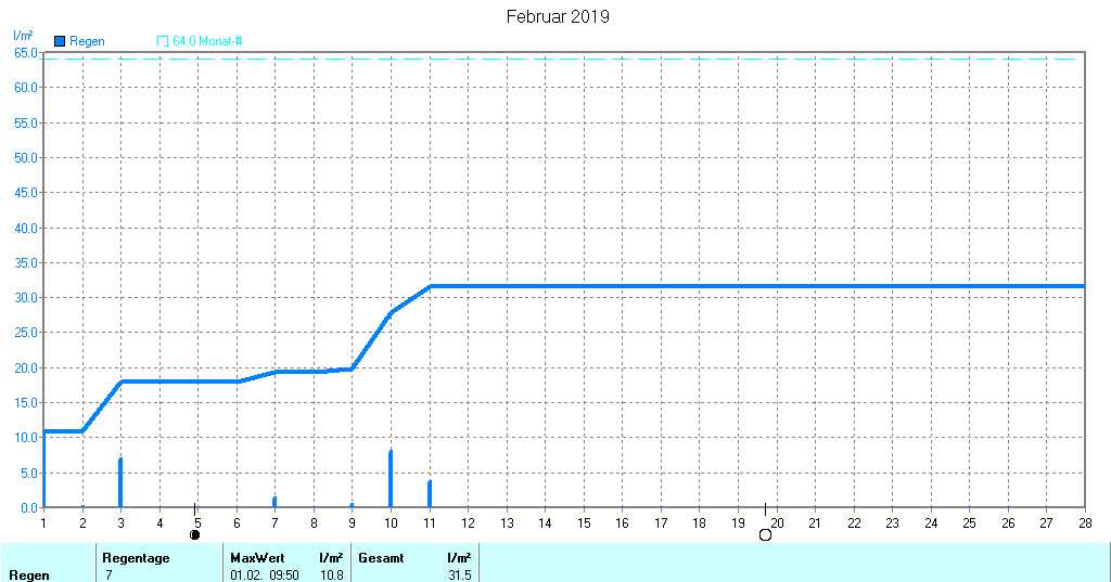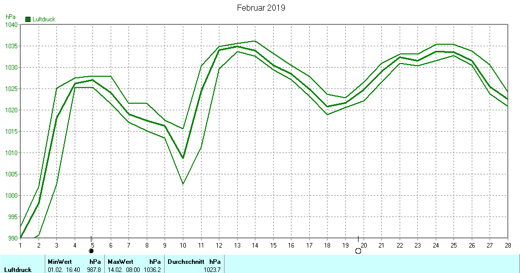 Einzelgrafiken zeigen Minimum, Mittelwert, Maximum (Regen und Windrichtung absolut)