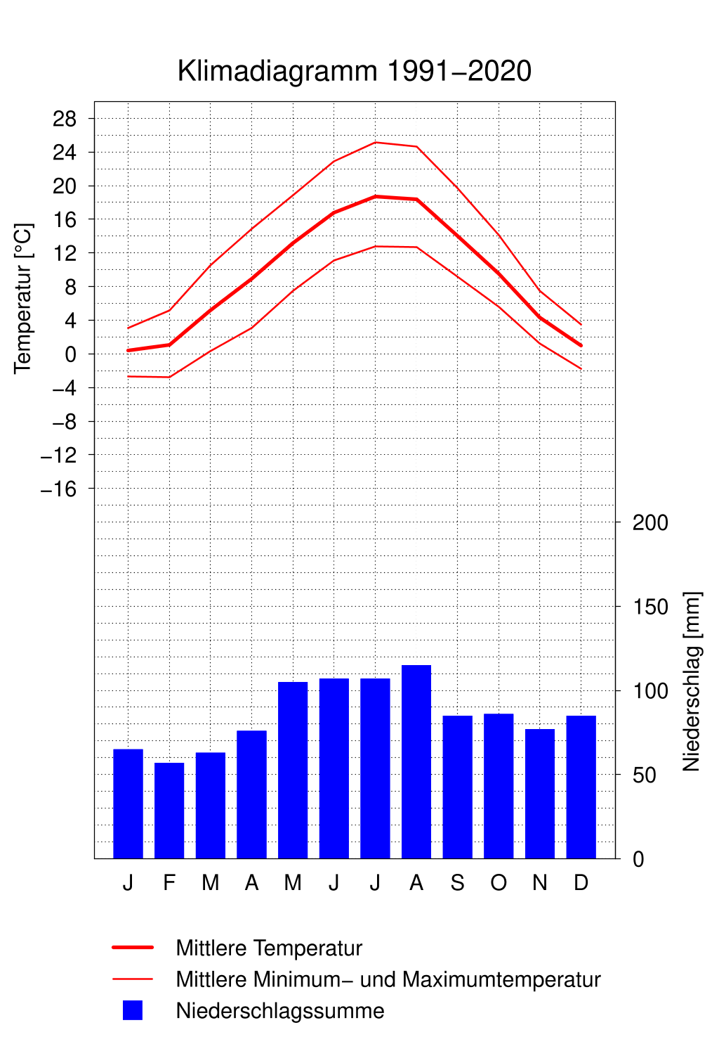 Temperaturmittelwerte und Niederschlagsmengen von 2026